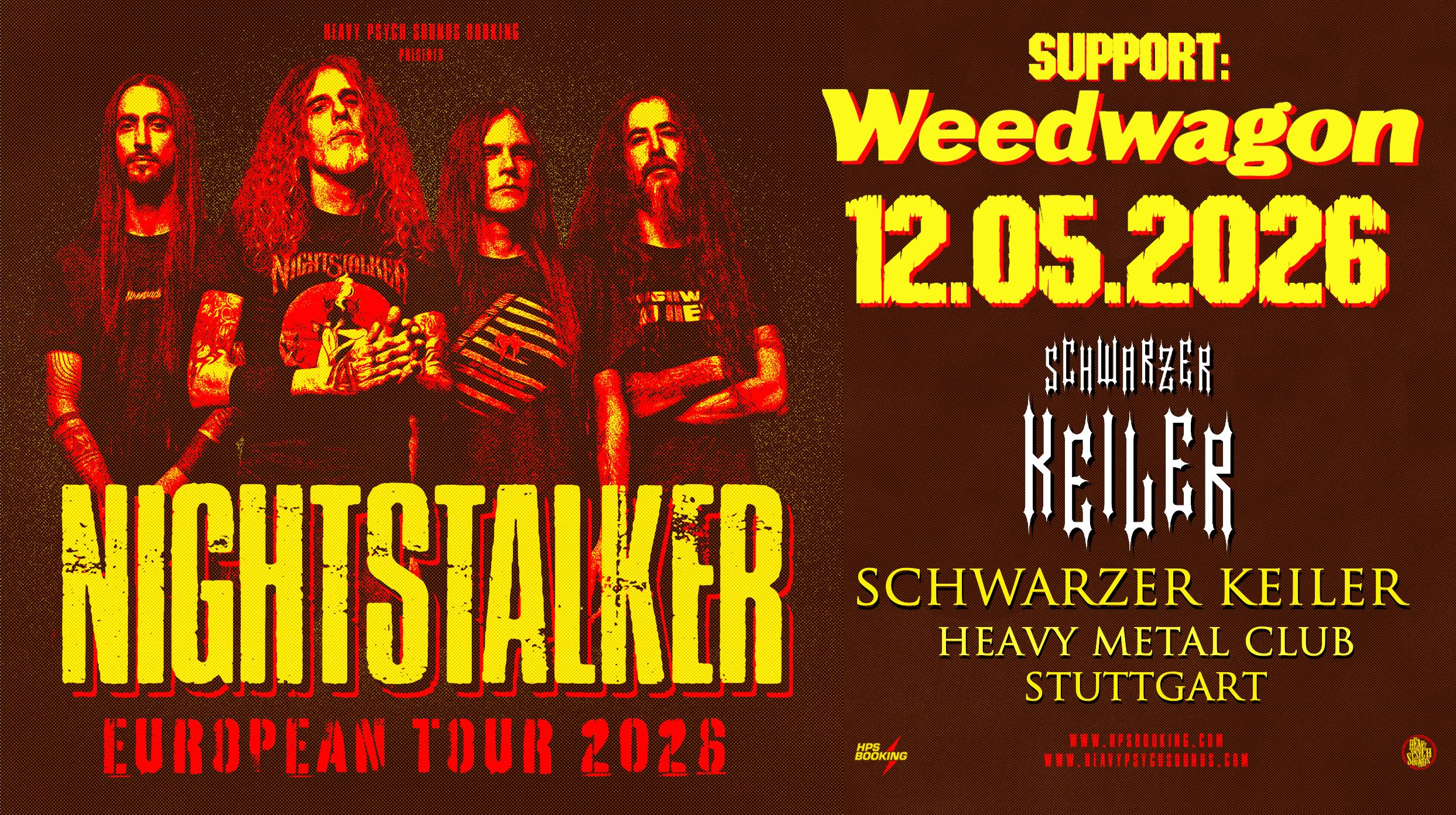 HervorgehobenDer Schwarze Keiler Fritz-Elsas-Str.60, Stuttgart, DeutschlandStoner-Metal aus Griechenland: Nightstalker live im Schwarzer Keiler! Support: Weedwagon aus Stuttgart. Schwere Riffs, fette Atmosphäre und ein lauter Abend im Keiler. 19:30, Beginn 20:30