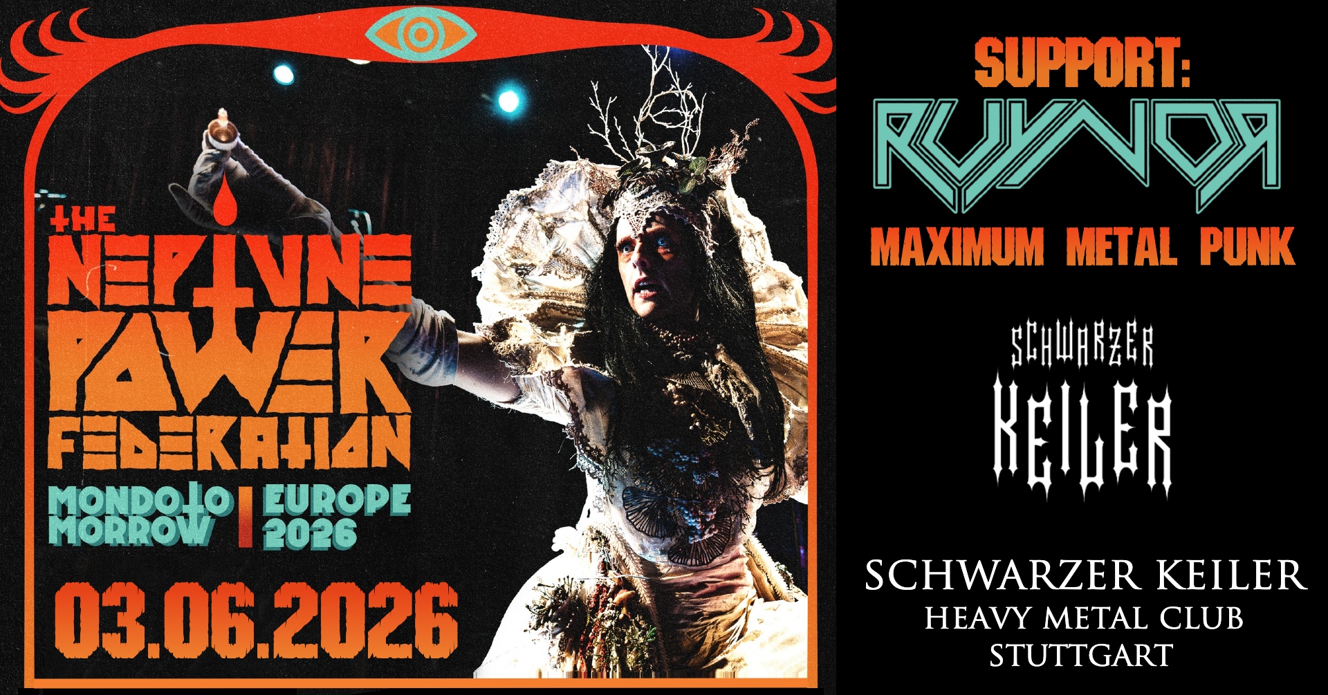 † 03.06.2026: The Neptune Power Federation † Support: Ruynor † Schwarzer Keiler Stuttgart